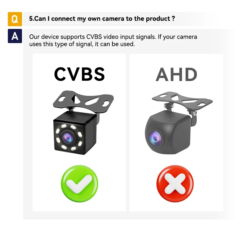 1.CarPlay only supports rearview camera functionality. It is recommended to purchase our compatible backup camera for use. Note: The system is exclusively compatible with CVBS cameras. Using other models may not only be incompatible but could also damage the head unit. Professional installation of the backup camera is strongly advised. The rearview image will automatically display when the vehicle is put into reverse.