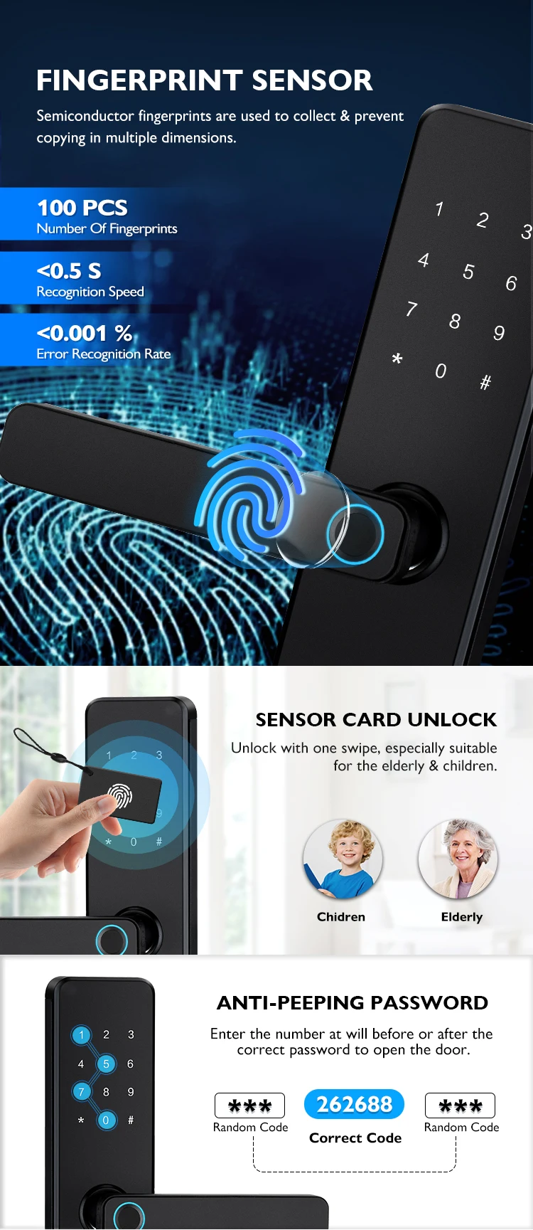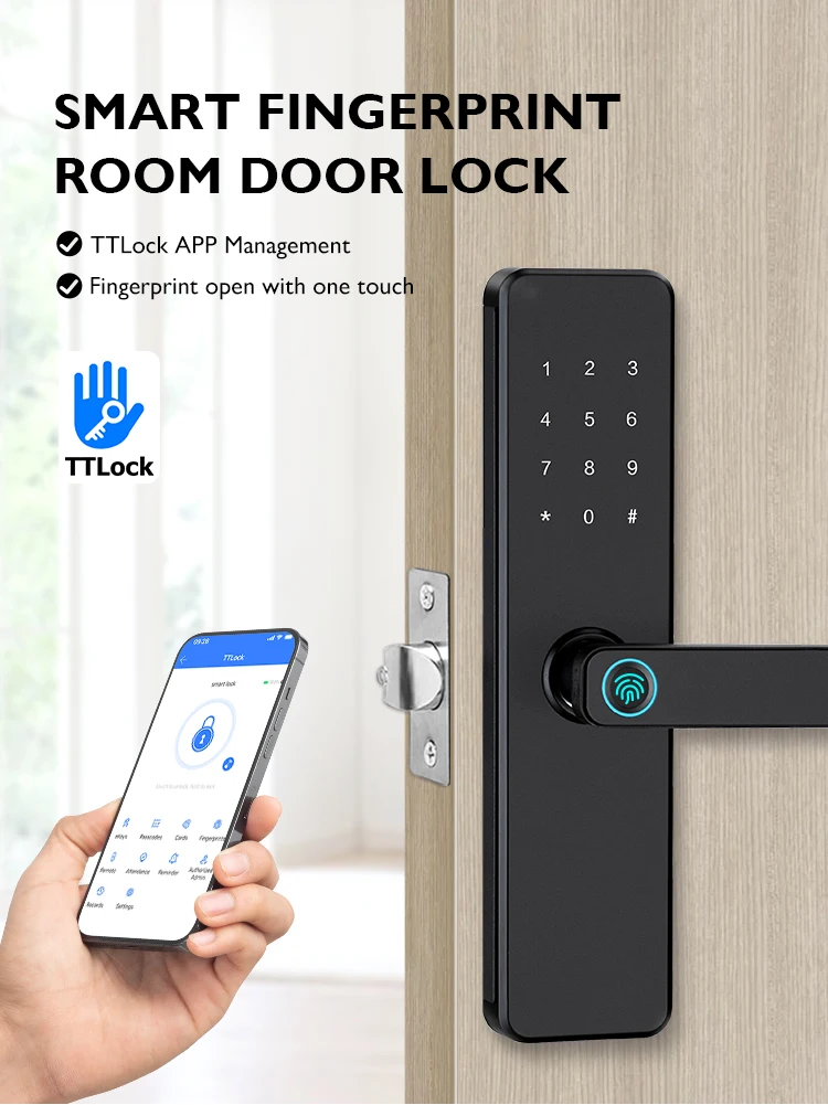 Bluetooth TTLock App Fingerprint Door Lock Code Card Key