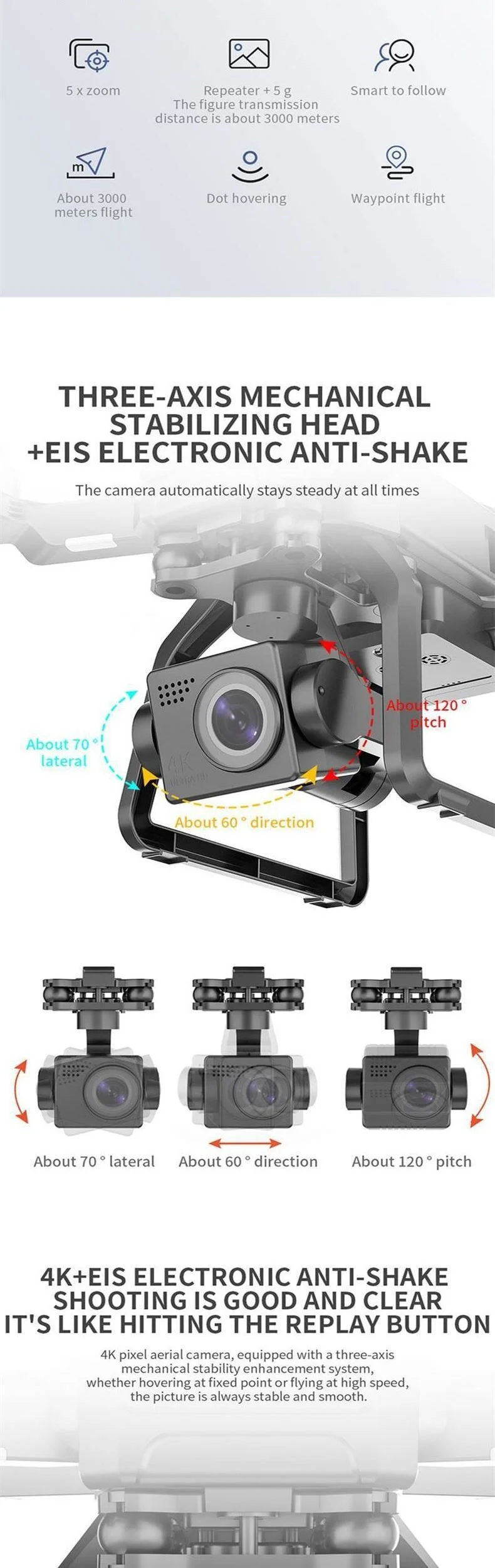 Featured Features: 3-axis mechanical gimbal (4K WiFi camera), 3KM real-time transmission