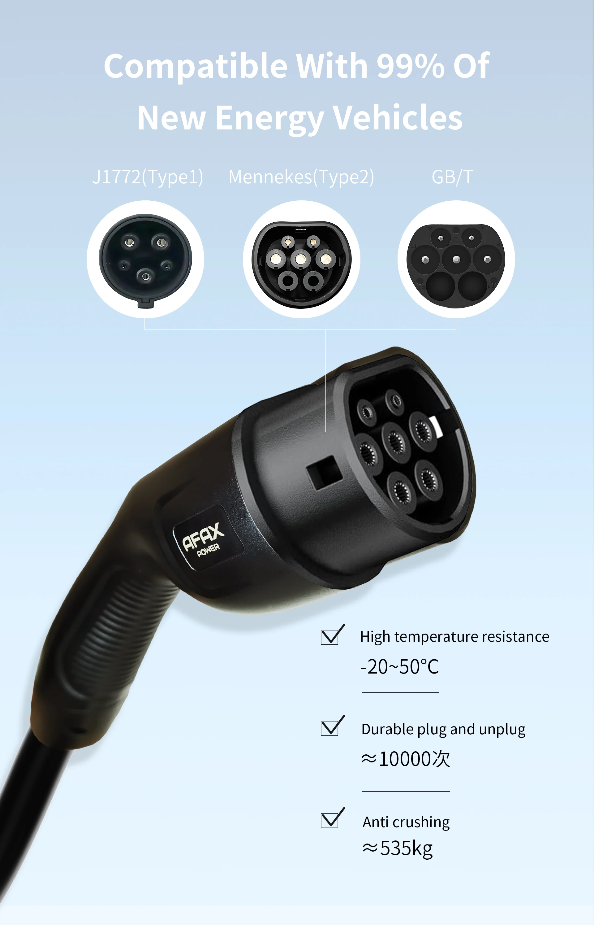 Safe and reliable: WATERPROOF & RESISTANT With our top sealing technology, the charging cable meets IP66 waterproof grade, you can easily charge your car in the rain.Protection against over/under voltage, overload, short circuit, leakage, earth fault, over temperature and lightning strike.