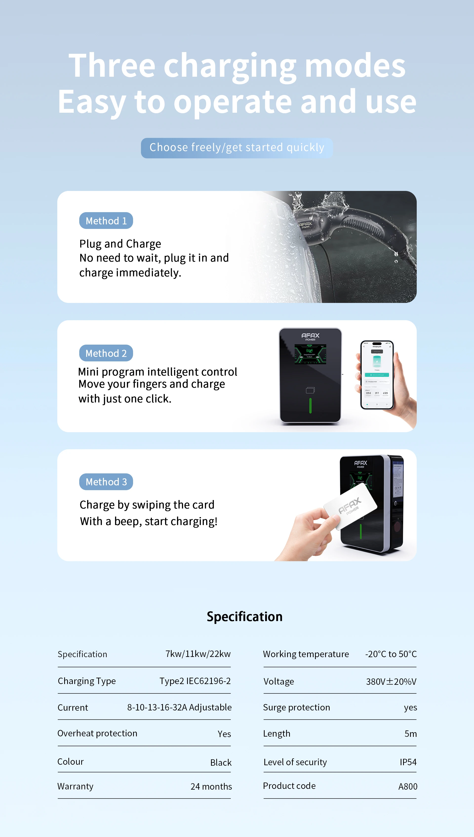 Home Smart Wallbox 7kw 11kw 22kw AC Charger