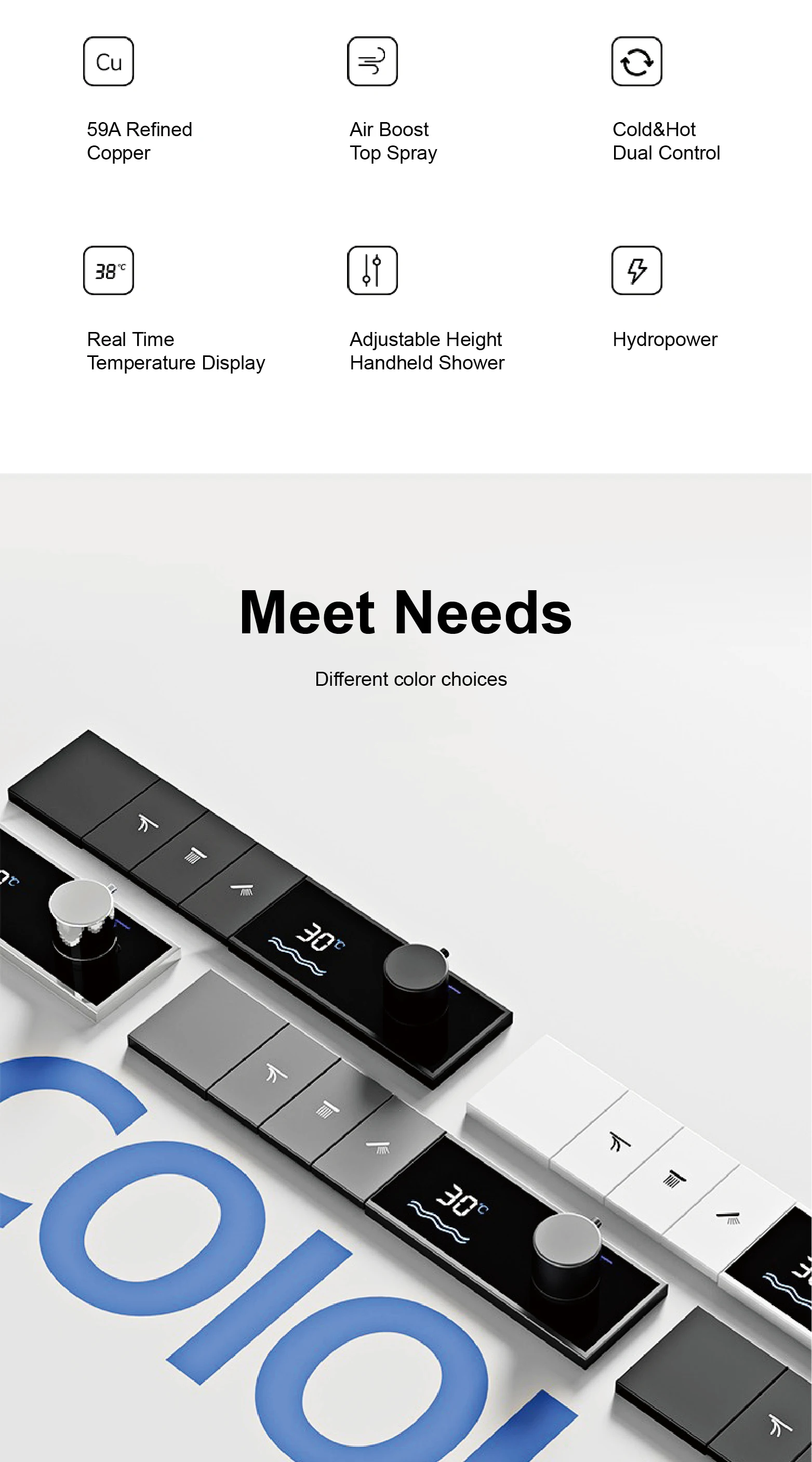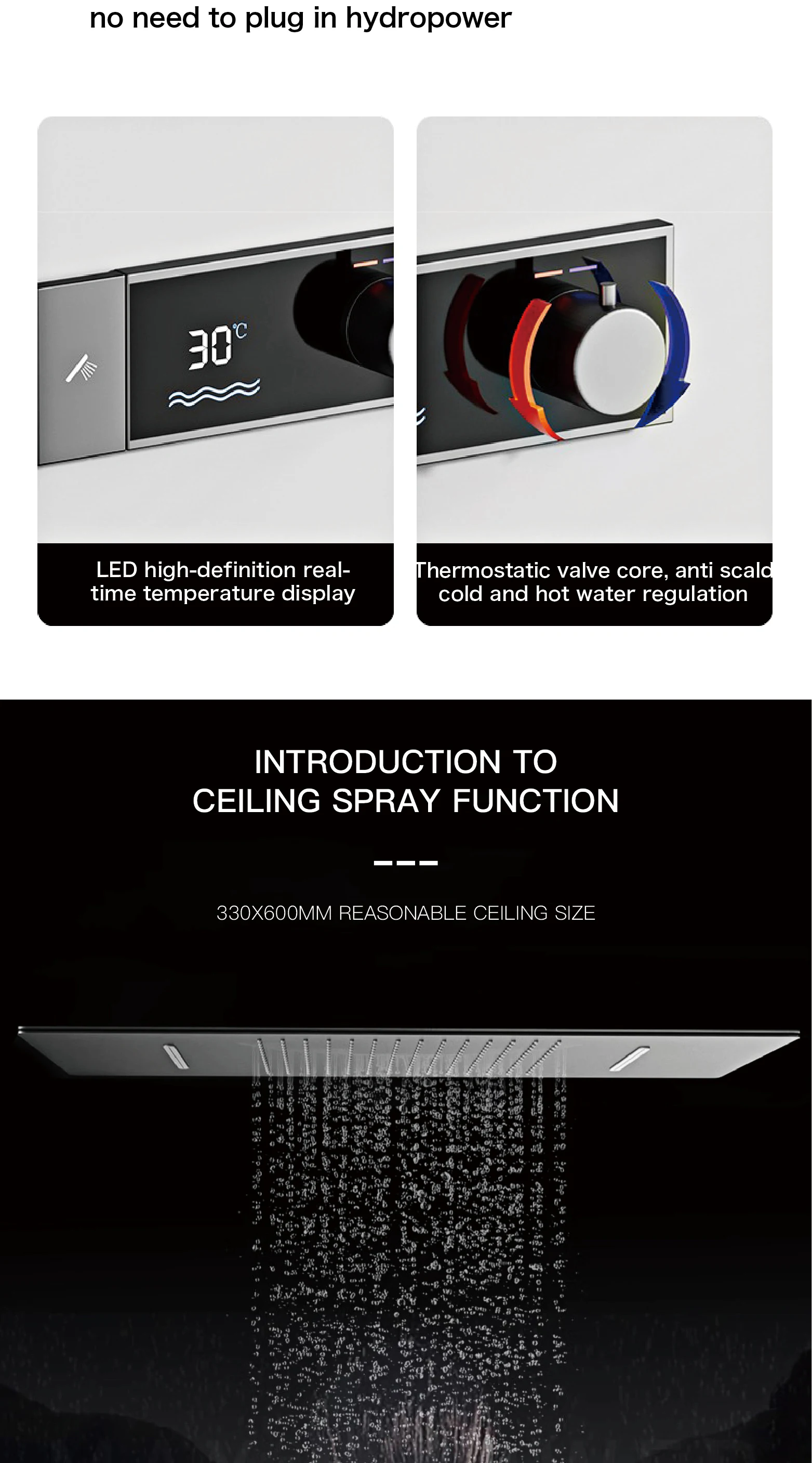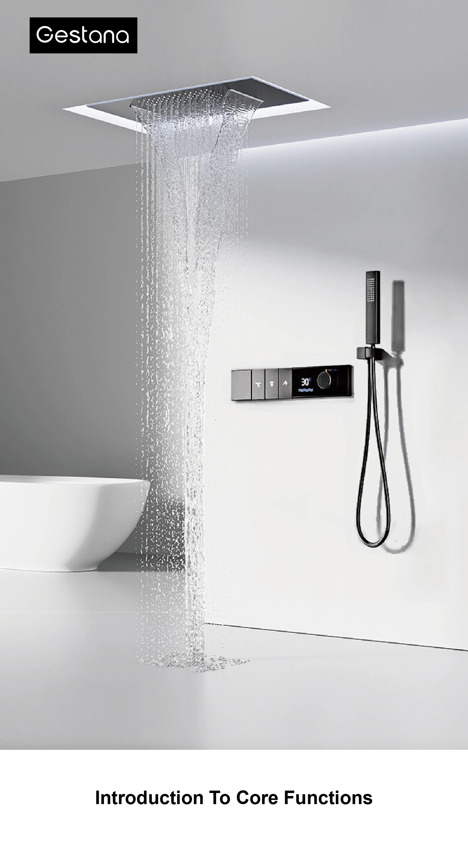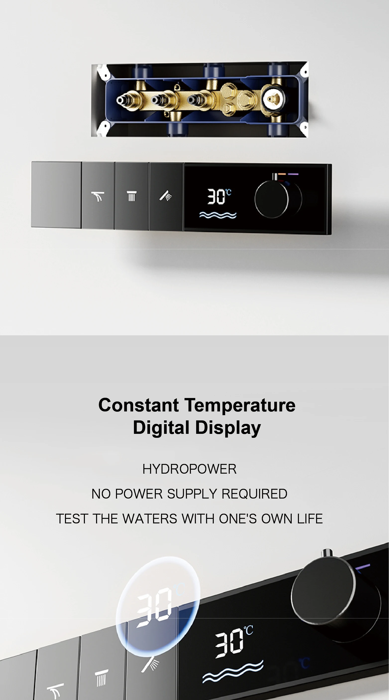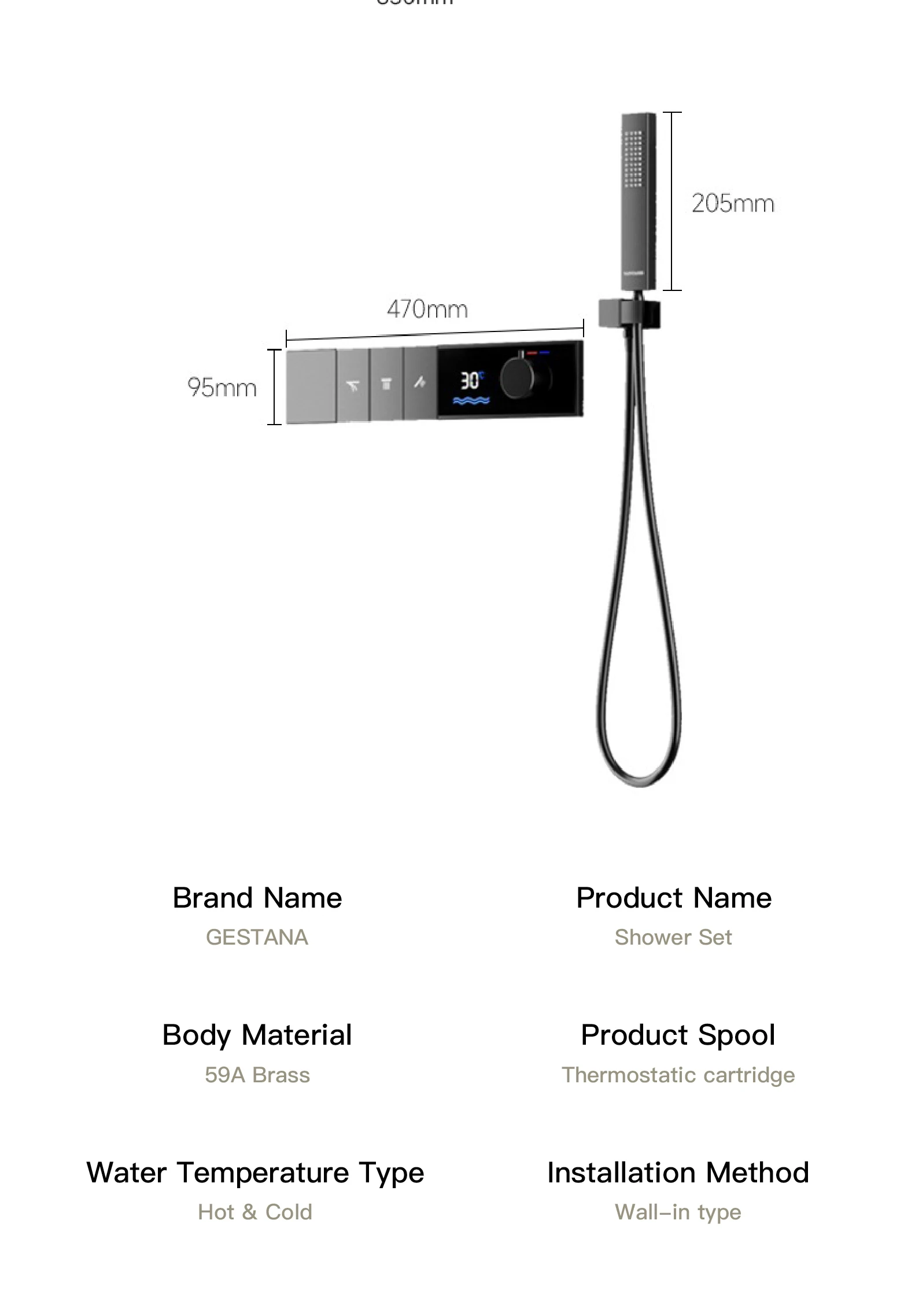 Luxury Brass Gun Grey Thermostatic LED Digital Display 3 Spray Modes Shower System