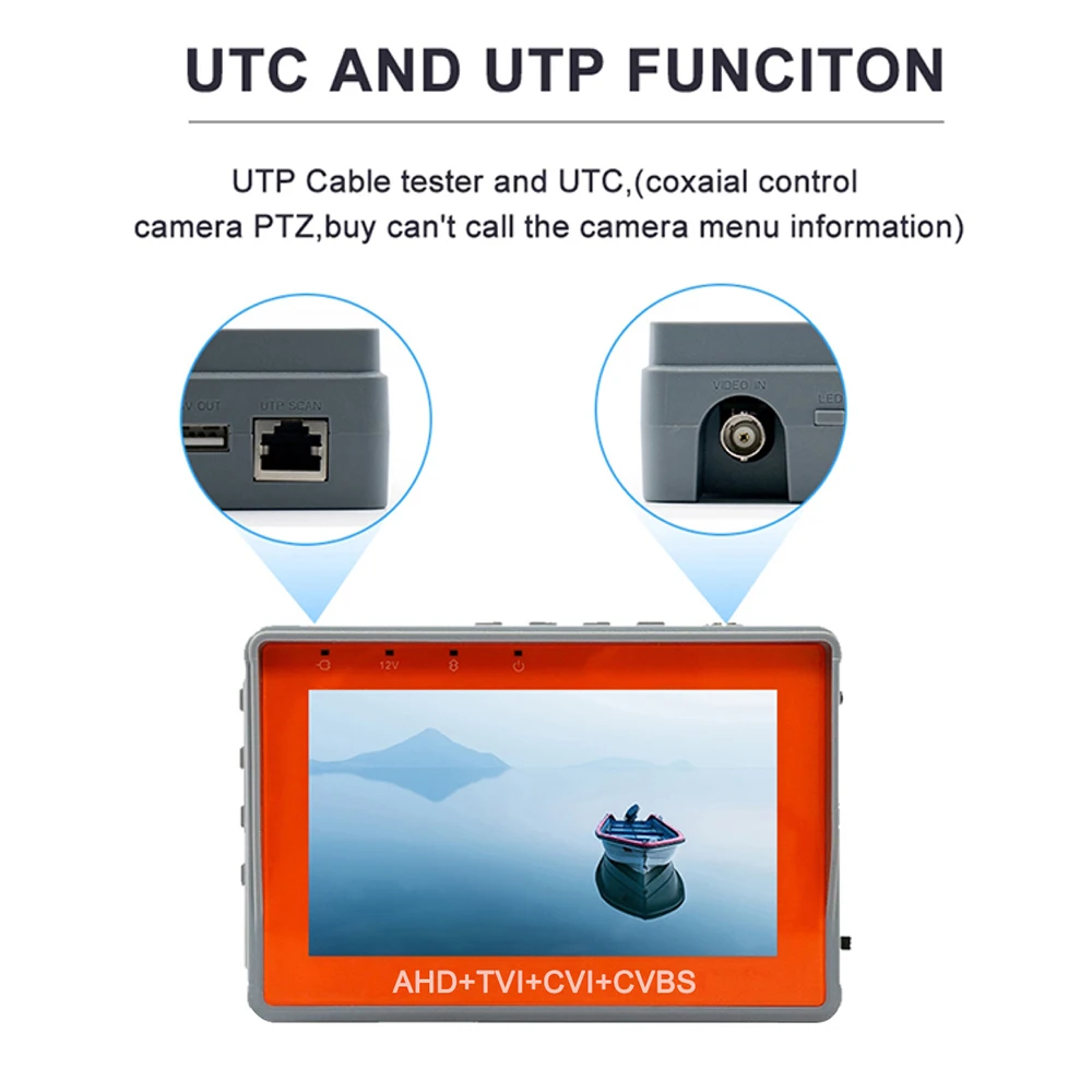 PEGATAH 5inch 8MP 4 in 1 CCTV Security Camera Tester AHD CVI TVI CVBS Analog Camera Monitor With HDMI VGA Input UTP Cable Tester