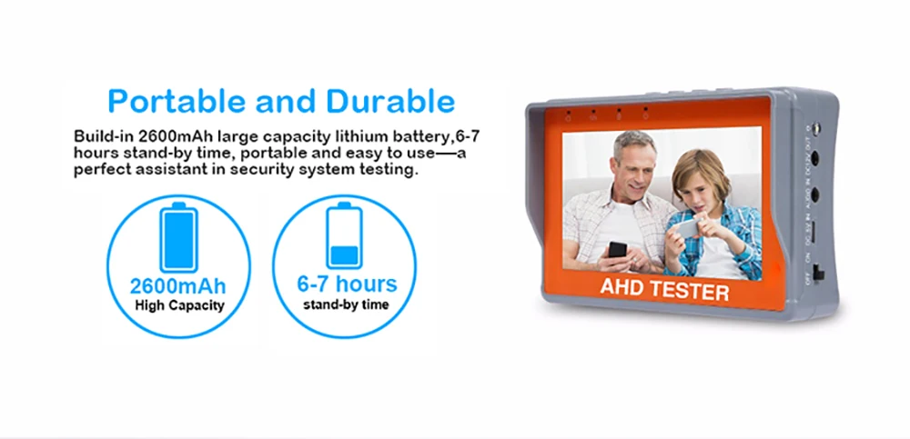 The tester support DC12V (1A) power output for camera. It is helpful for demo and testing when the power supply is not available.