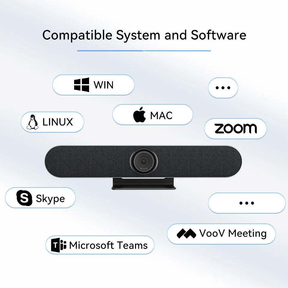 3.The conference all-in-one machine is applicable to WIN; MAC; LINUX systems; Zoom; Microsoft Teams; and Tecent conference software; allowing you to connect with your teammates no matter what kind of systems or software they use.