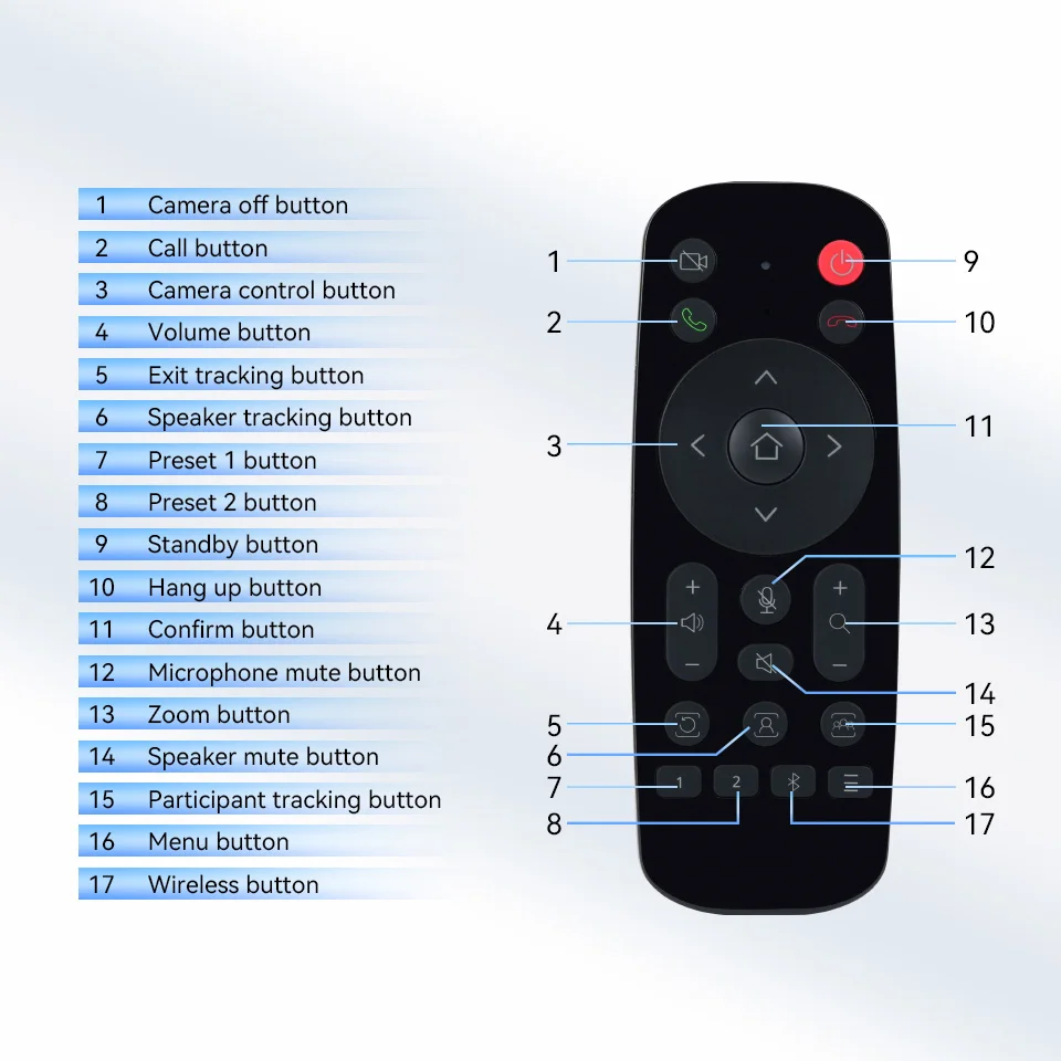 8.The package contains an infrared remote control that can be used to remotely control the conference all-in-one machine; you can control it through the remote control without leaving your seat