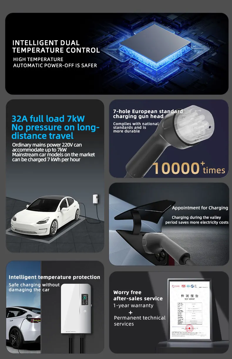 Ultra-smart EV Wallbox, make your charging more convenient and intelligent,Take advantage of many smart features by integrated Wifi and Bluetooth which provide access to the application :
