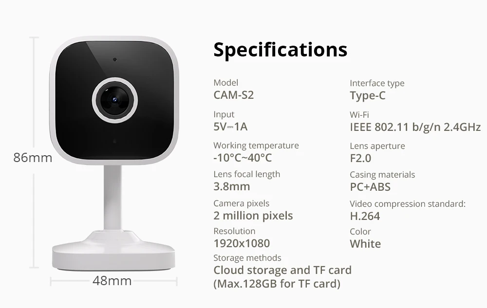 Cam Slim gen2 supports max. 128G Micro TF card storage and mass cloud storage. You can subscribe camera plan to unlock exclusive features to enhance your Cam Slim Gen2's experience.