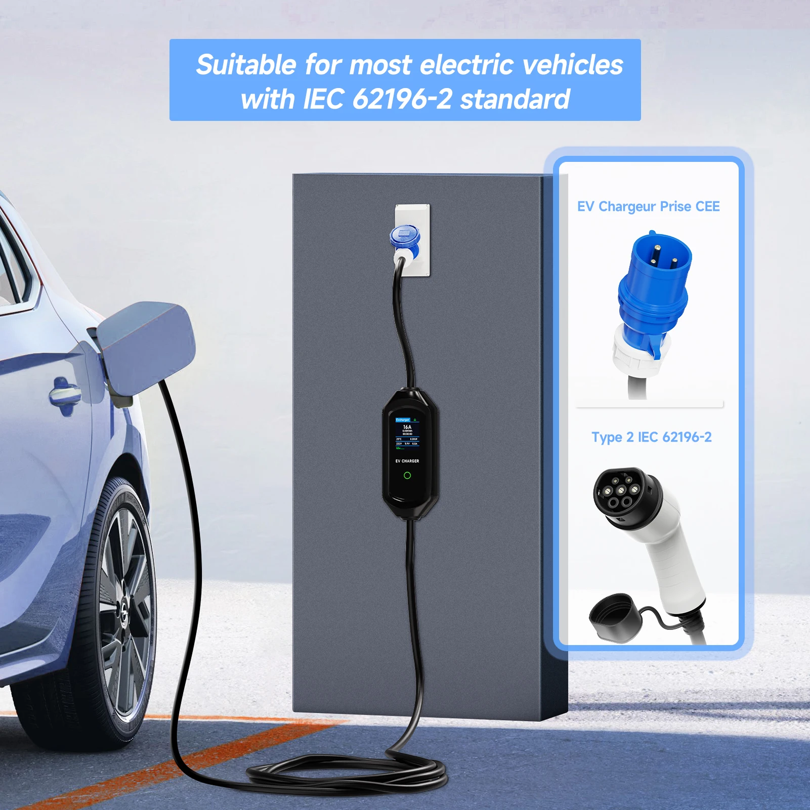 Type2 IEC62196-2 Portable EV Charger 7KW 32A Type1 J1772 EVSE Fast Charging Cable GBT 20234 CEE Plug WiFi APP Bluetooth Control